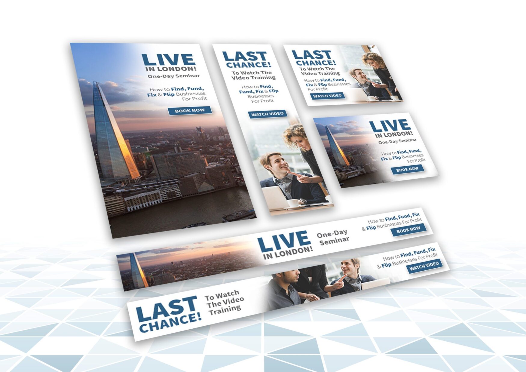 This is a process whereby people visiting your site will then see adverts for your company (or the products they left in the basket) on other websites they visit afterwards. By having a suite of advert sizes and proportions you can use them on a vast array of sites.
